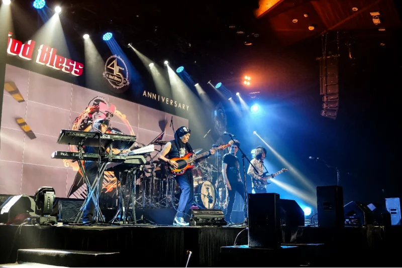 Tak hanya itu, dalam pertunjukan akbarnya God Bless juga menggandeng beberapa musisi Indonesia, yaitu Nidji untuk tampil berkolaborasi di hari pertama, lalu Piyu dan Fadli dari band Padi Reborn pada hari kedua. Berkat sinergi Telkom Landmark Tower dan MD Media sebagai bagian dari TelkomGroup, perhelatan 45th God Bless Anniversary Concert sukses digelar dengan meriah.